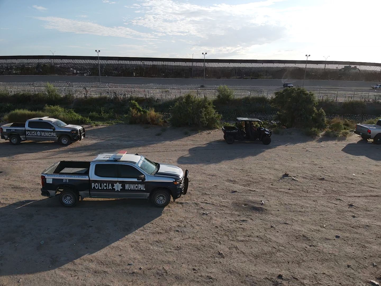 Ciudad Juárez.- La Secretaría de Seguridad Pública Municipal a través de la oficina de enlace con autoridades extrajeras realizaron el día de hoy un operativo a lo largo de toda la franja fronteriza, los agentes en patrullas y elementos a bordo de vehículos todo terreno, patrullaron desde muy temprano la frontera.