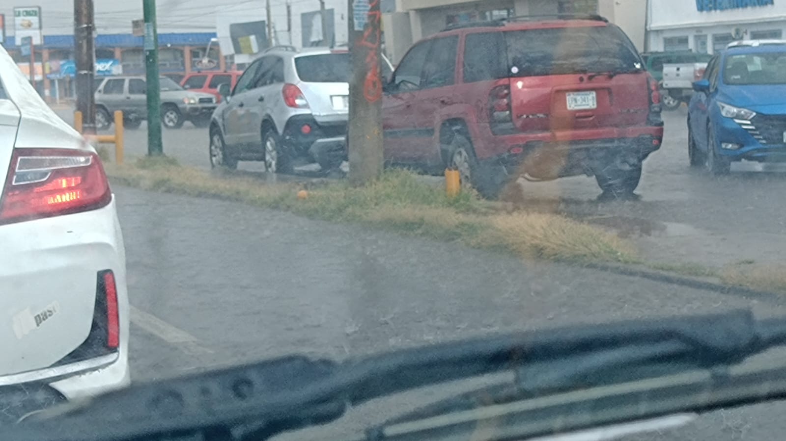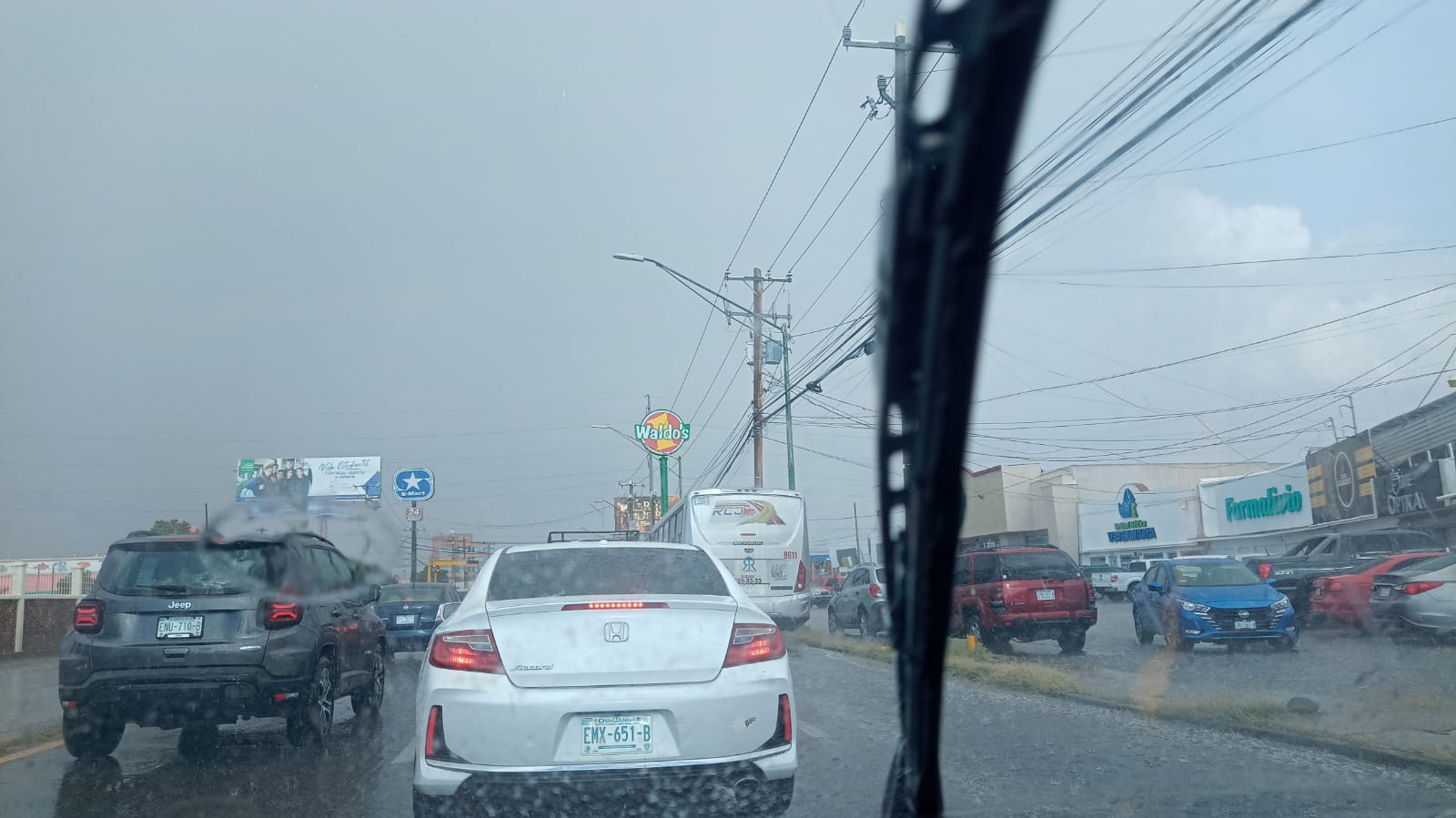Ciudad Juárez. – Después de unas intensas ráfagas de viento que superaron los 40-50km/h, una fuerte lluvia cayó en diferentes sectores de la ciudad, pegando principalmente en la zona Centro, lo que provocó algunas inundaciones y encharcamientos de agua en calles y avenidas.