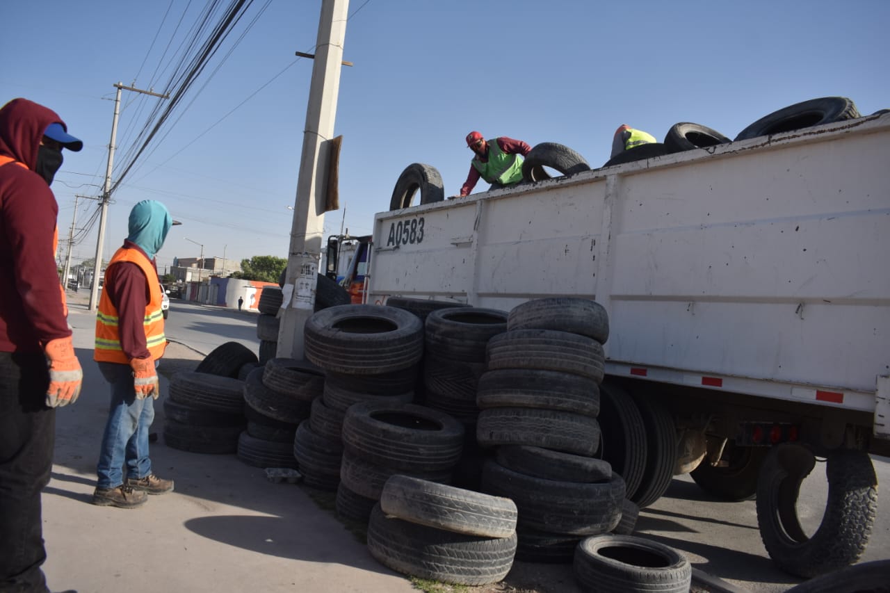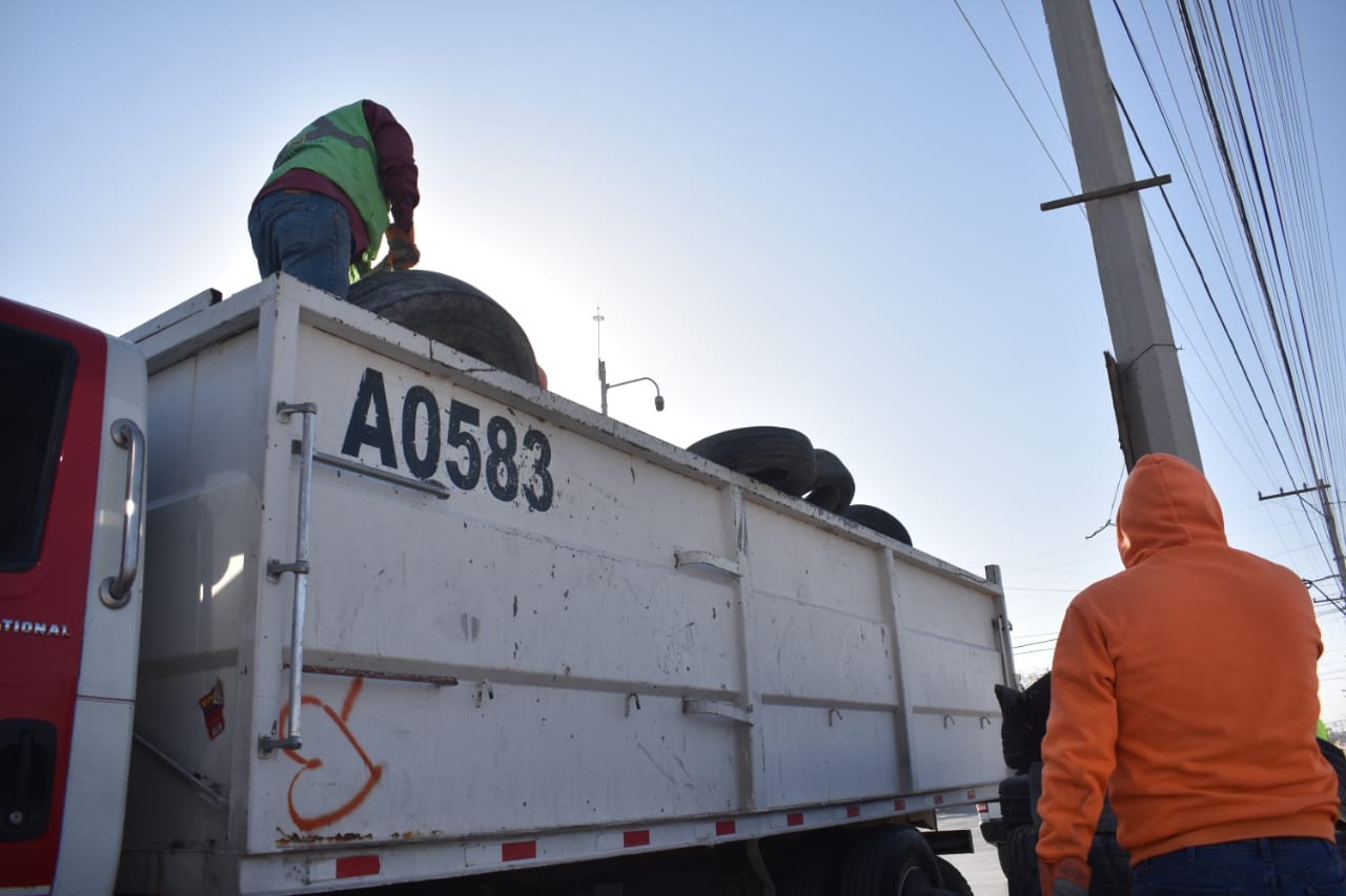 Por instrucciones del Presidente Municipal, Cruz Pérez Cuéllar, esta mañana cuadrillas de la Dirección de Limpia acudieron al cruce de las calles Custodio de la República y Puerto Alicante para realizar el retiro de llantas que fueron depositadas por una persona, en la vía pública, el cual fue evidenciado a través de videos en redes sociales.