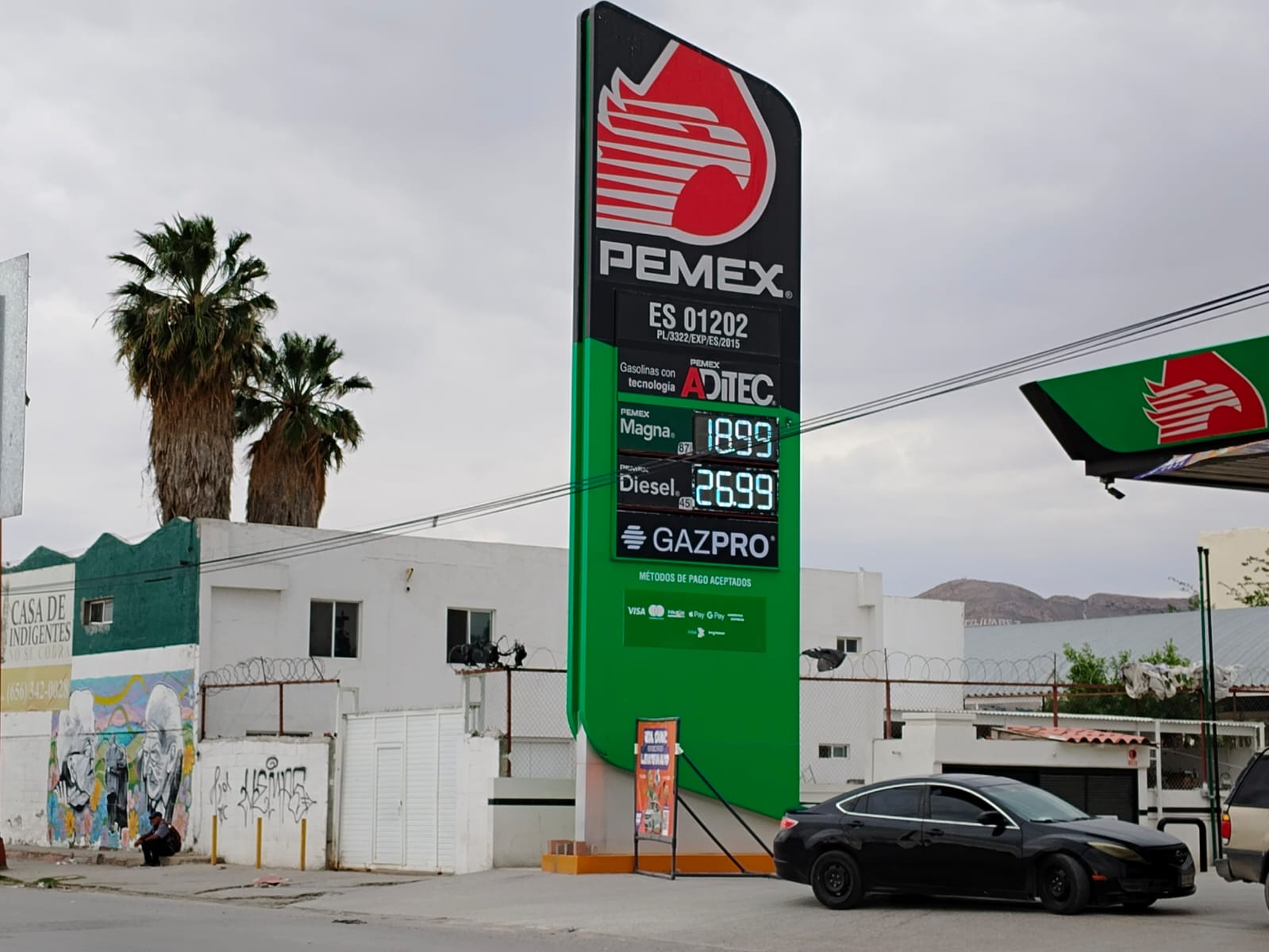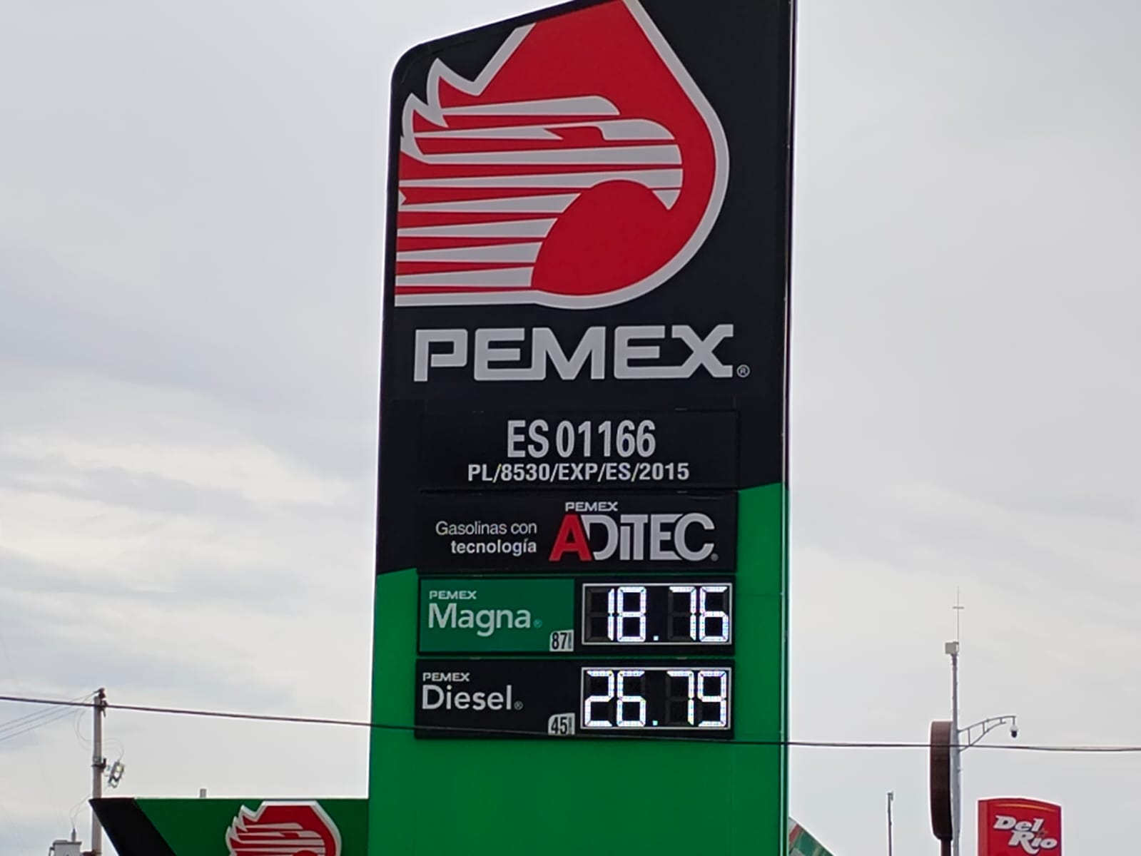 En la estación ubicada en el cruce de Vicente Guerrero y calle Constitución, el precio de la gasolina magna se encuentra en 18.99 pesos por litro, mientras que el diésel se vende en 26.99 pesos. En comparación con la semana pasada, la gasolina verde presenta un aumento de un peso, mientras que el diésel conserva el mismo costo.