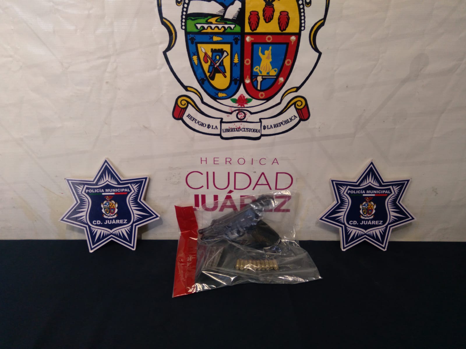 Ciudad Juárez-. Elementos de la Secretaría de Seguridad Pública Municipal arrestaron a Abdiel Alán V. C. y a un adolescente, por su presunta responsabilidad en la comisión de delitos contra la ley federal de armas de fuego y explosivos.