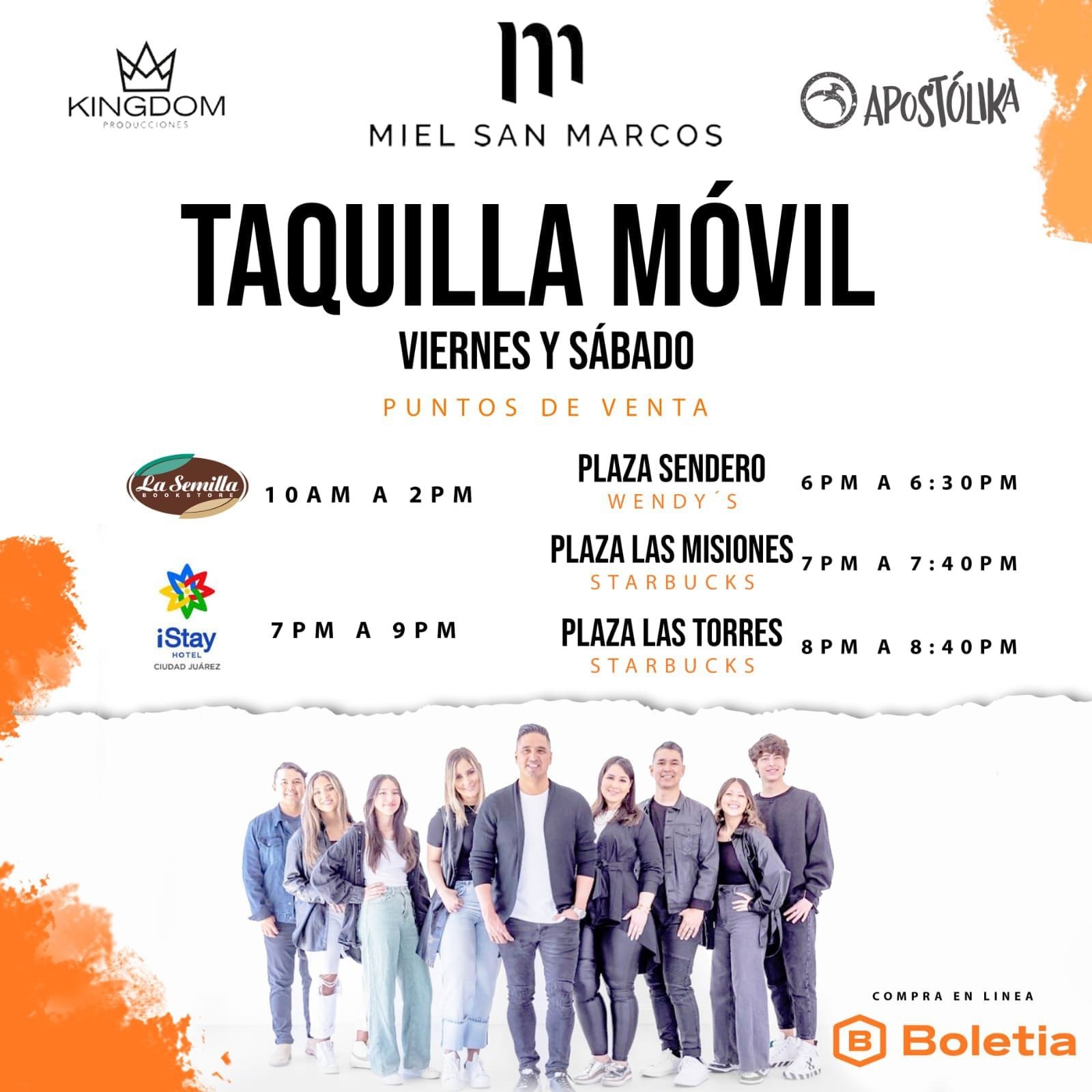 El evento está programado para el próximo domingo y dará inicio a las 5 pm. Los boletos están disponibles para su compra en línea a través de la página oficial del evento: http://mielsanmarcosenciudadjuarez.boletia.com