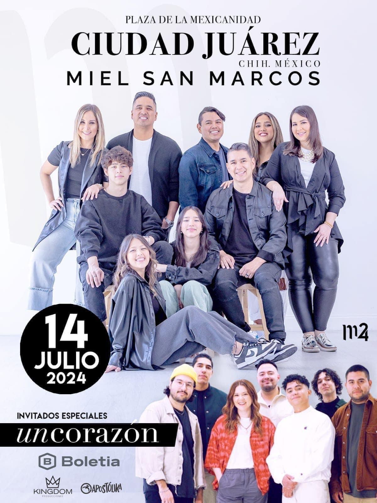 Ciudad Juárez.- Este domingo próximo 14 de julio, la reconocida agrupación cristiana Miel San Marcos estará en esta ciudad con un evento especial diseñado para toda la familia. El encuentro se llevará a cabo en la Plaza de la Mexicanidad, ofreciendo una tarde de música y celebración en un ambiente seguro y edificante.
