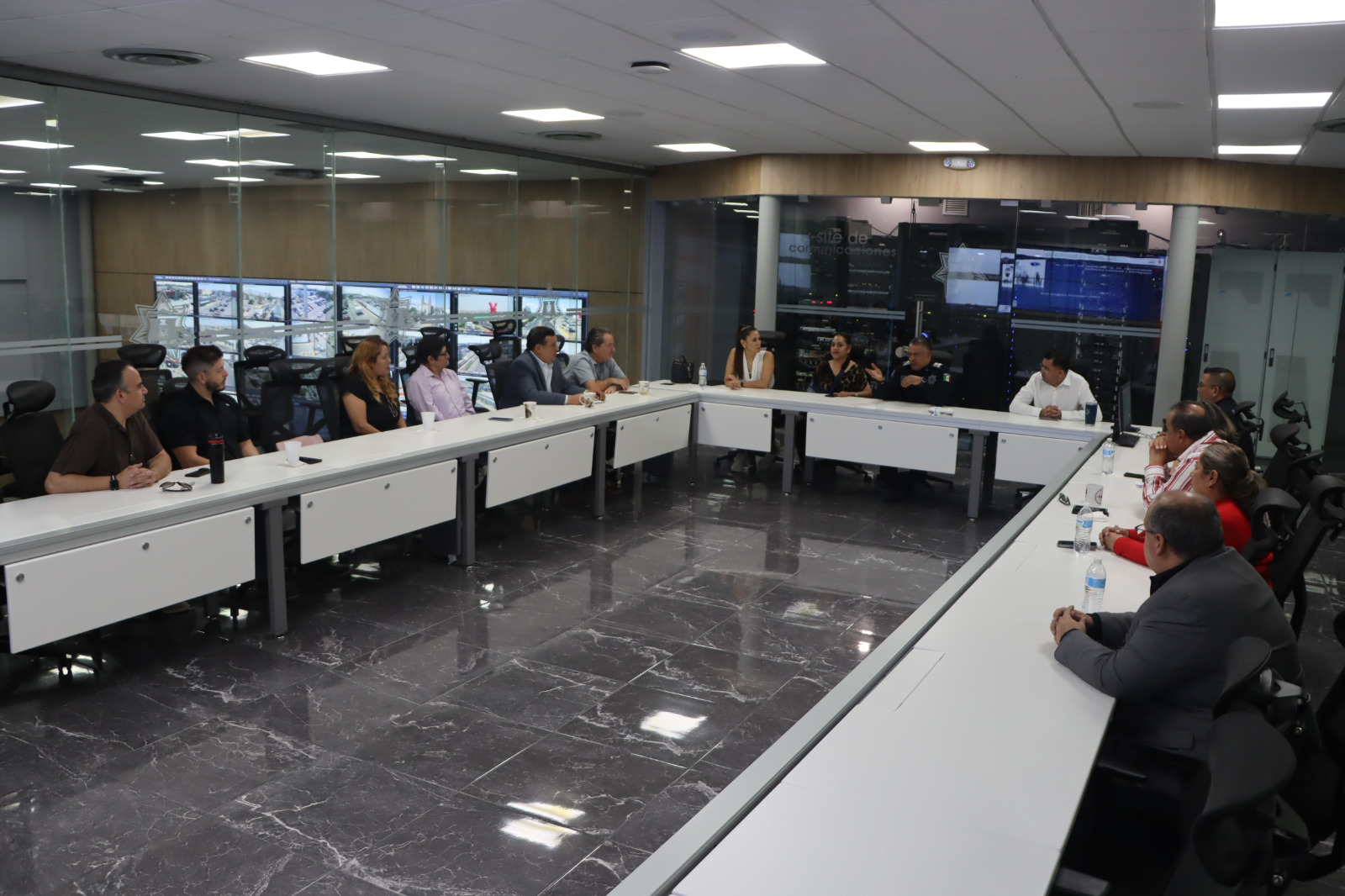 La visita inició con una reunión de bienvenida con el Secretario de Seguridad Pública Municipal, el Doctor César Omar Muñoz Morales y la coordinadora del CERI, la ingeniero Lucina Fierro, en la cual tuvieron una extensa plática acerca de las ventajas de sumarse al plan de video vigilancia colaborativa a través de las cámaras exteriores en las empresas o negocios, platicaron de los botones de pánico, arcos lectores, centros de mando móvil y drones, entre otros temas, así como las ventajas de contar con la aplicación de telefonía móvil ¨Juárez Emergencias¨ para agilizar la atención a la ciudadanía.