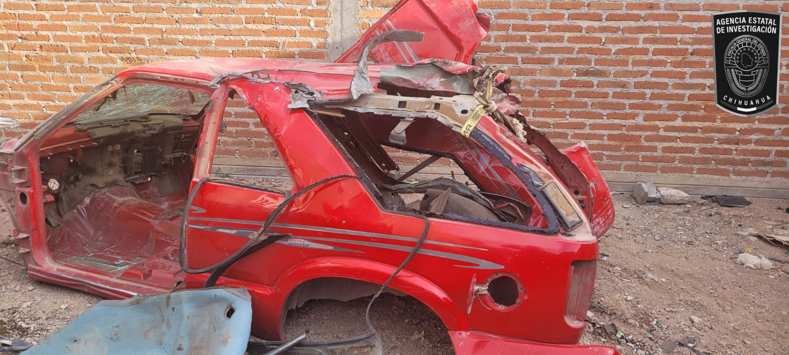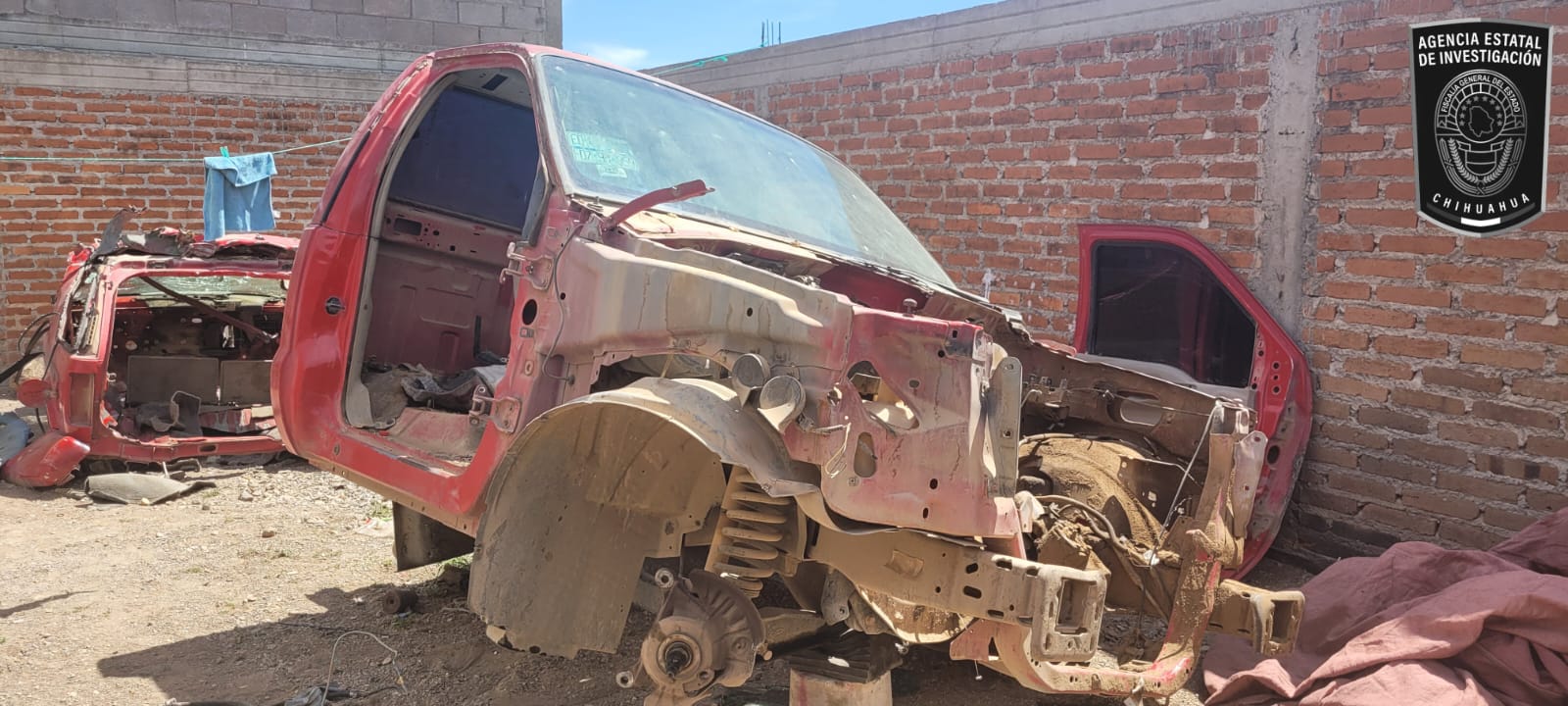 Se trata de una Chevrolet, Blazer, modelo 2001, color rojo, sin placas de circulación la cual contaba con reporte del 02 de junio del 2024 en Cuauhtémoc; asimismo una cabina y parte del chasis de una pick up, Ford, roja, modelo 2000, con reporte de robo del 18 de mayo del 2024.