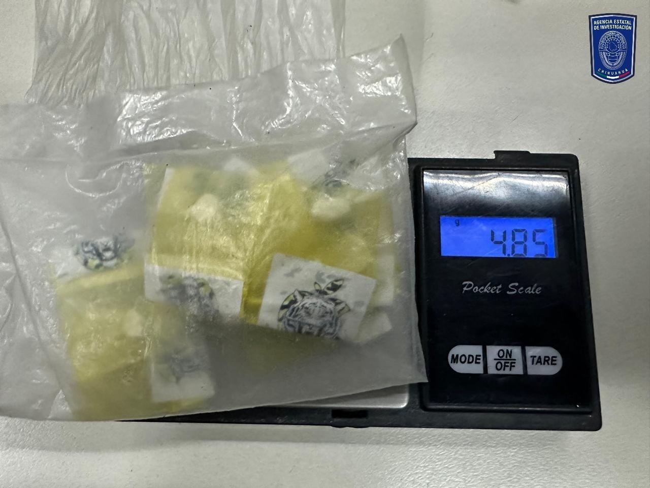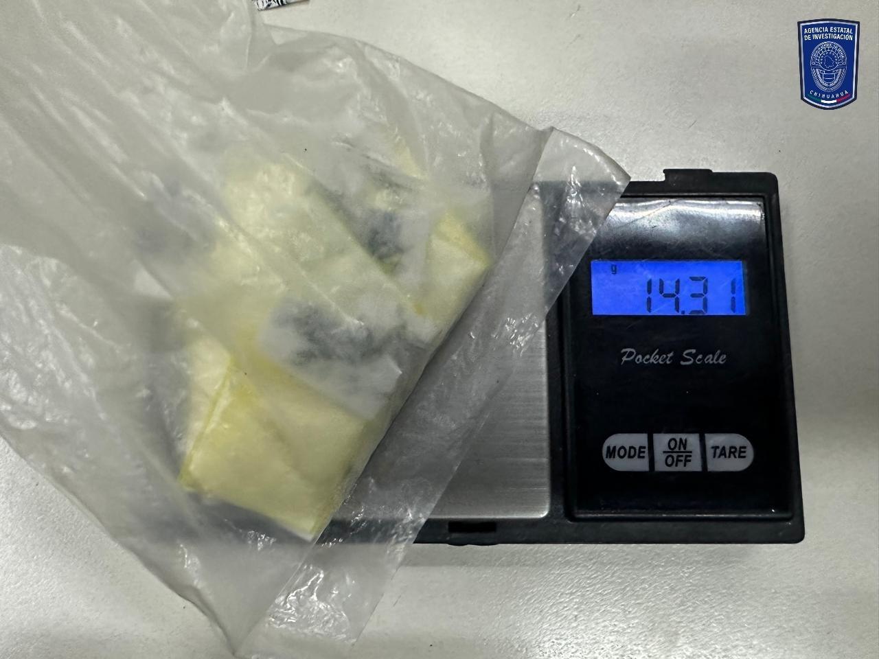 La detenida, de 47 años de edad, traía entre sus pertenencias 20 envoltorios que contenían un polvo blanco con las características de la cocaína con un peso de 14.31 gramos y 12 envoltorios que contenían una sustancia granulosa con las características de la cocaína en piedra con un peso de 4. 85 gramos.